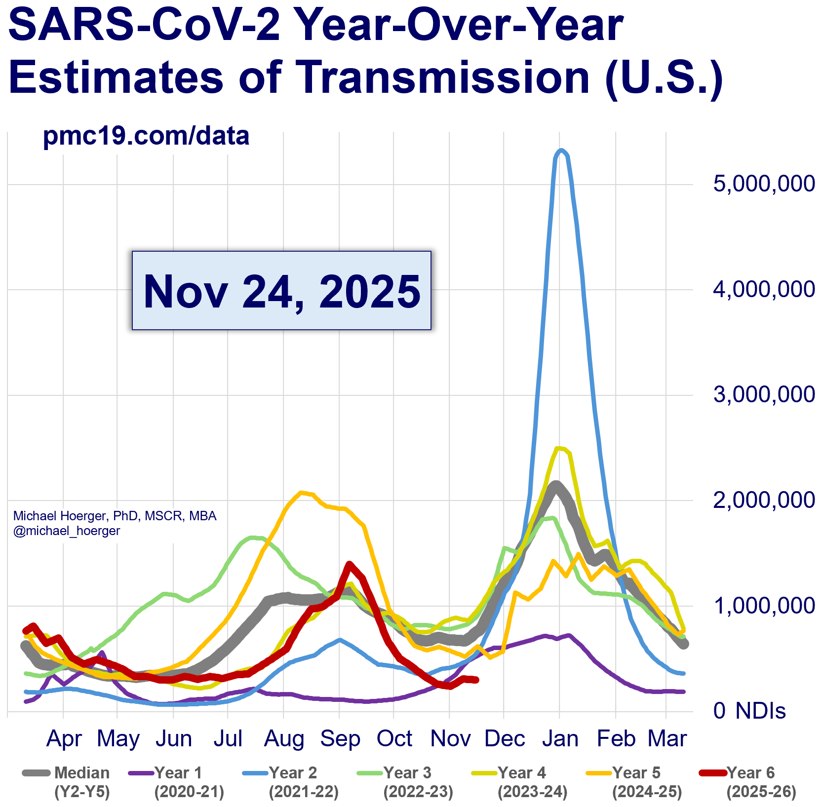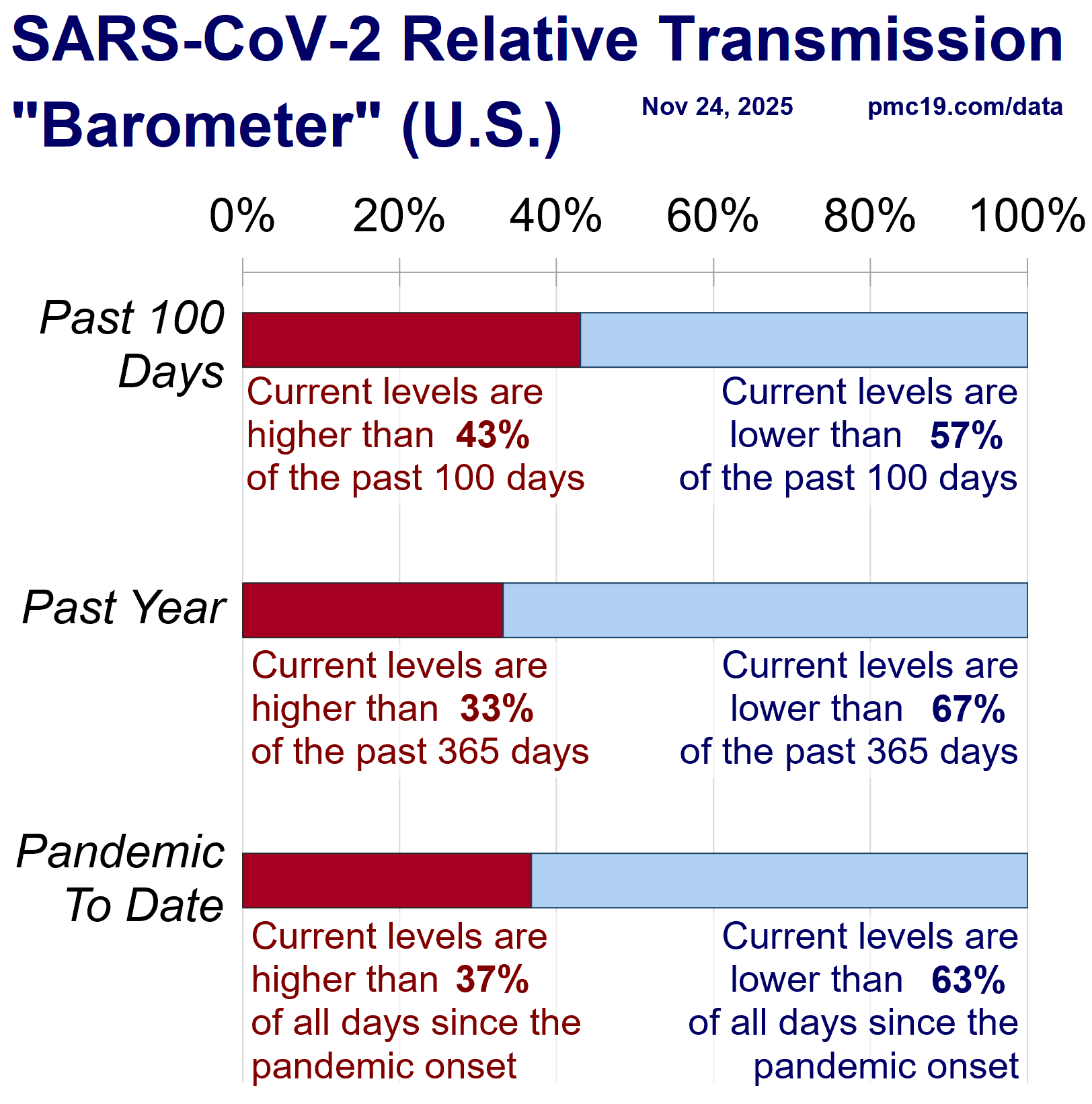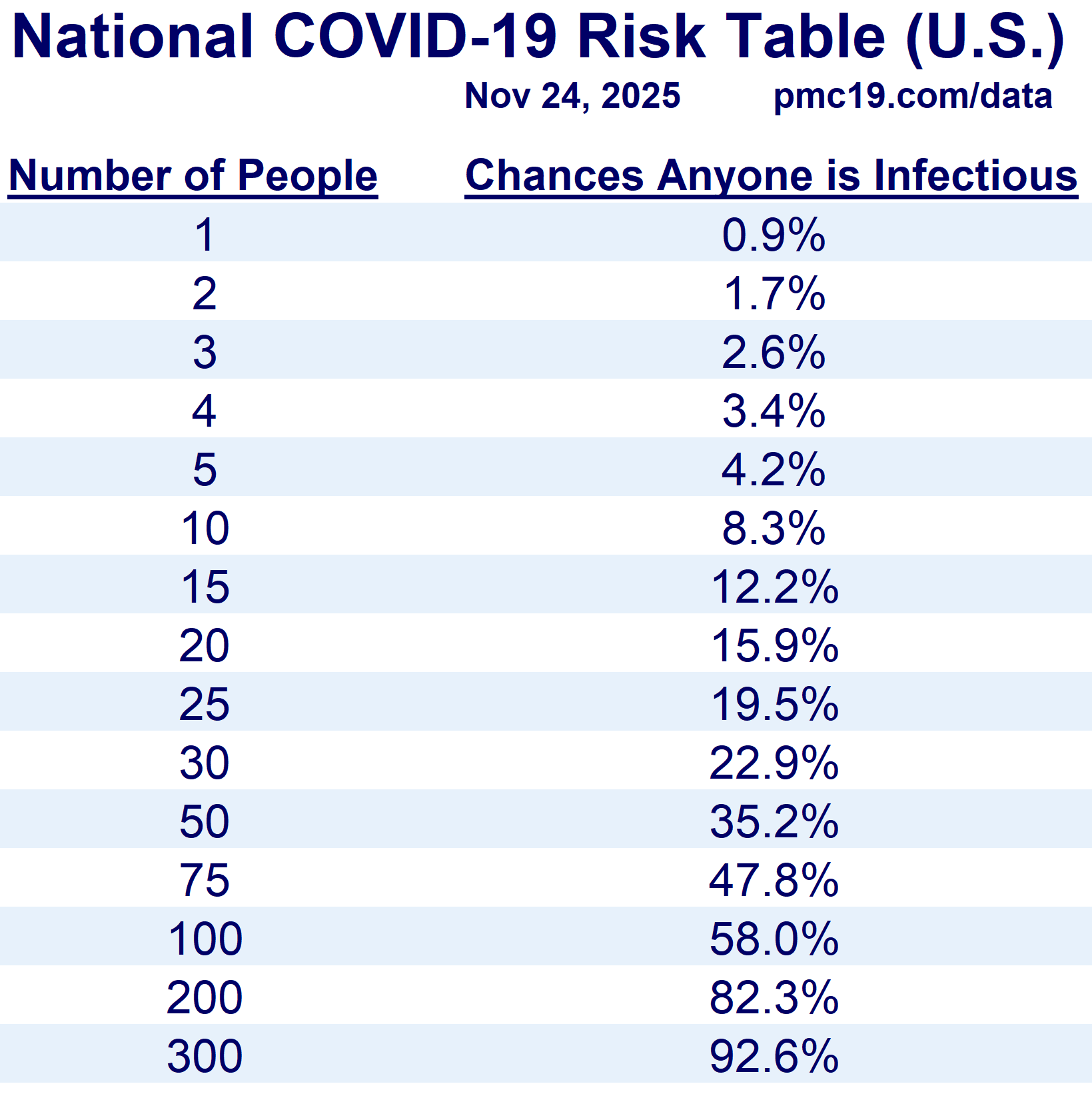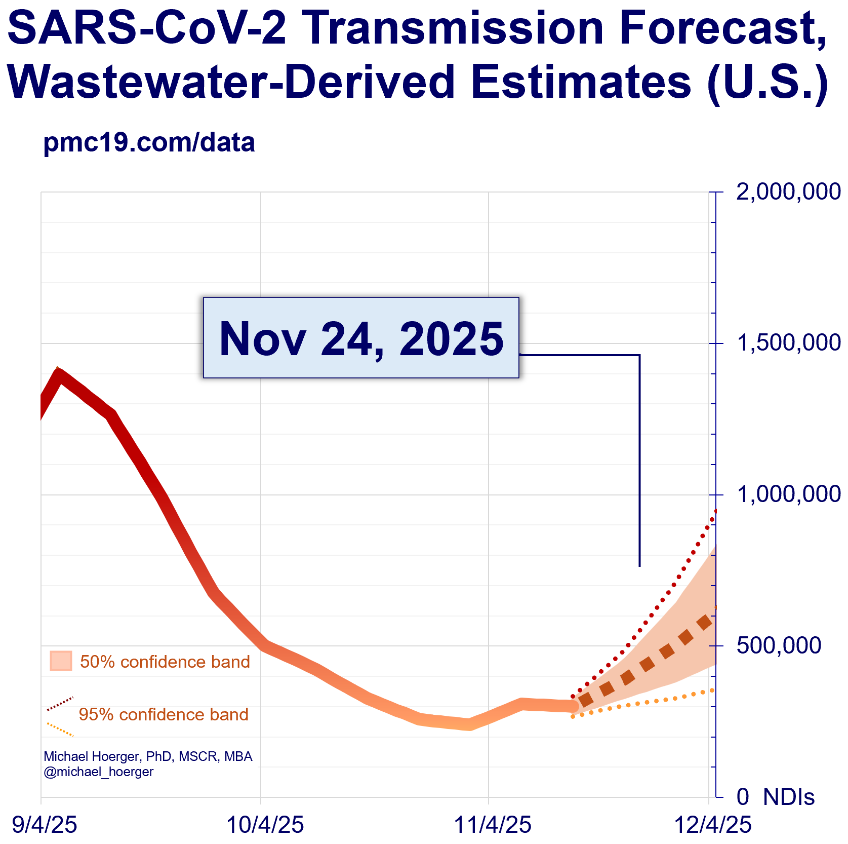 (Next report on Dec 2)All data are back online. Note that state-level estimates are likely underestimates, as they are based on the most recent data, which are over a week old. National estimates incorporate the forecasting model, which projects higher levels based on the typical increases observed in late November.