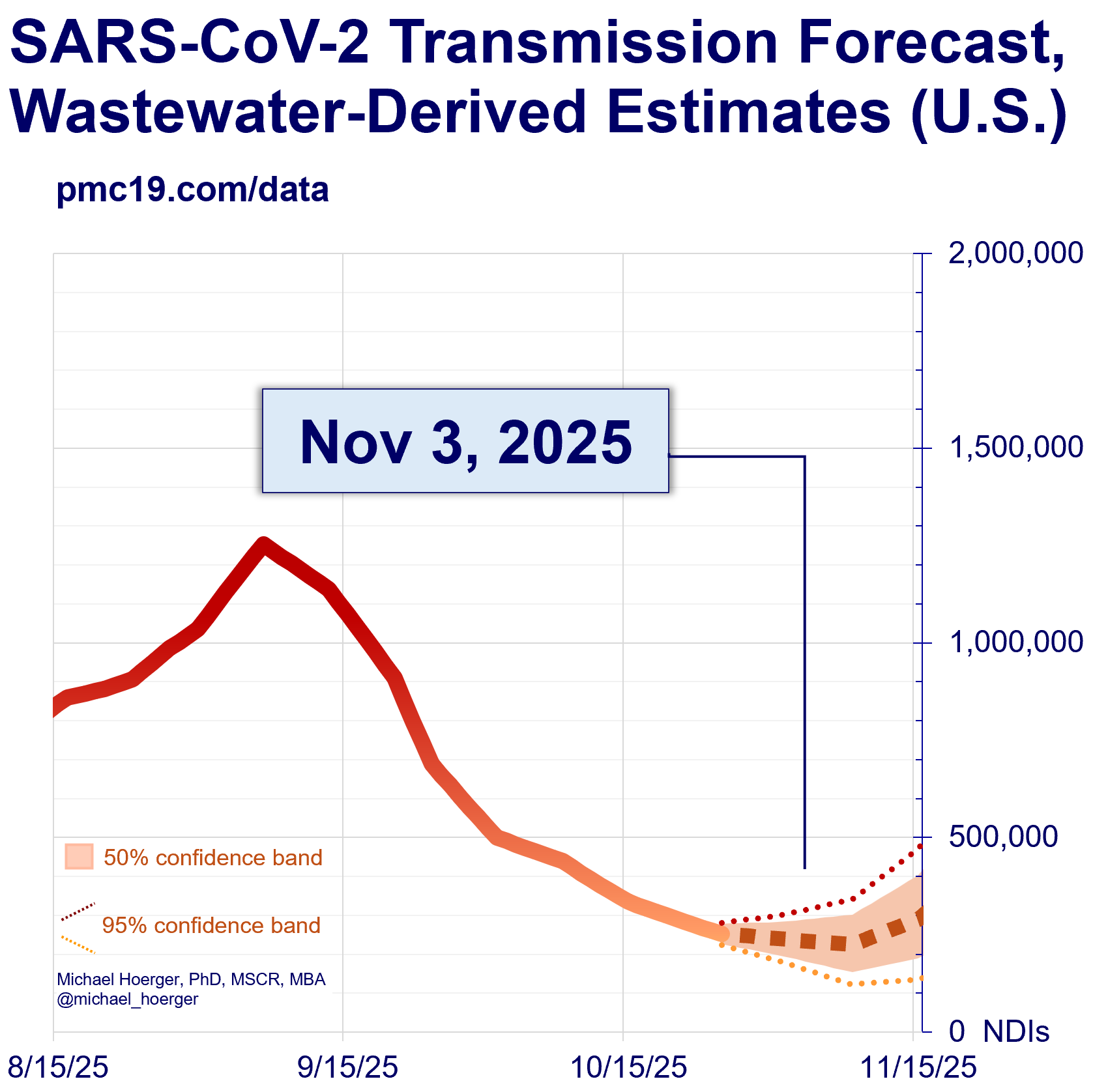 With the CDC offline, we can continue to provide national updates on transmission from Biobot wastewater data. Transmission remains flat in a relative "lull." Continue to monitor non-CDC state-level data where available.