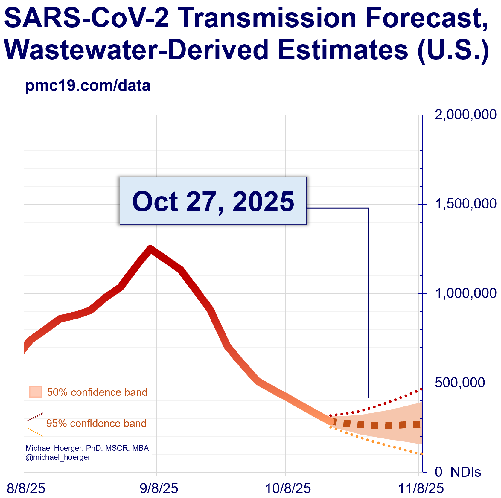 With the CDC offline, we can continue to provide national updates on transmission from Biobot wastewater data. Transmission remains flat in a relative "lull." Continue to monitor non-CDC state-level data where available.