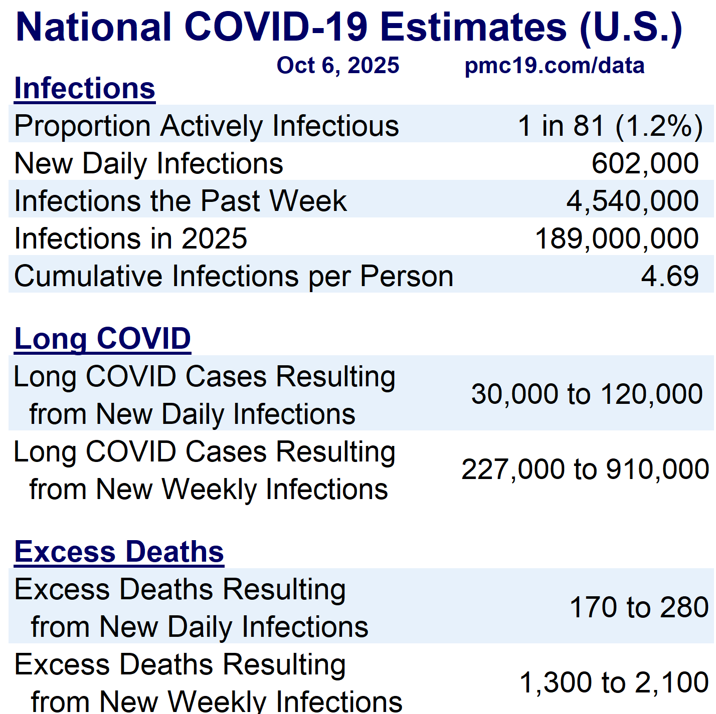 Amid the federal government "shutdown," we are in a blackout on CDC state-level data. Our model is designed for such blackouts and remains resilient at the national level, leaning on Biobot data for recent national estimates of changes in transmission. Monitor state-level data where still available.