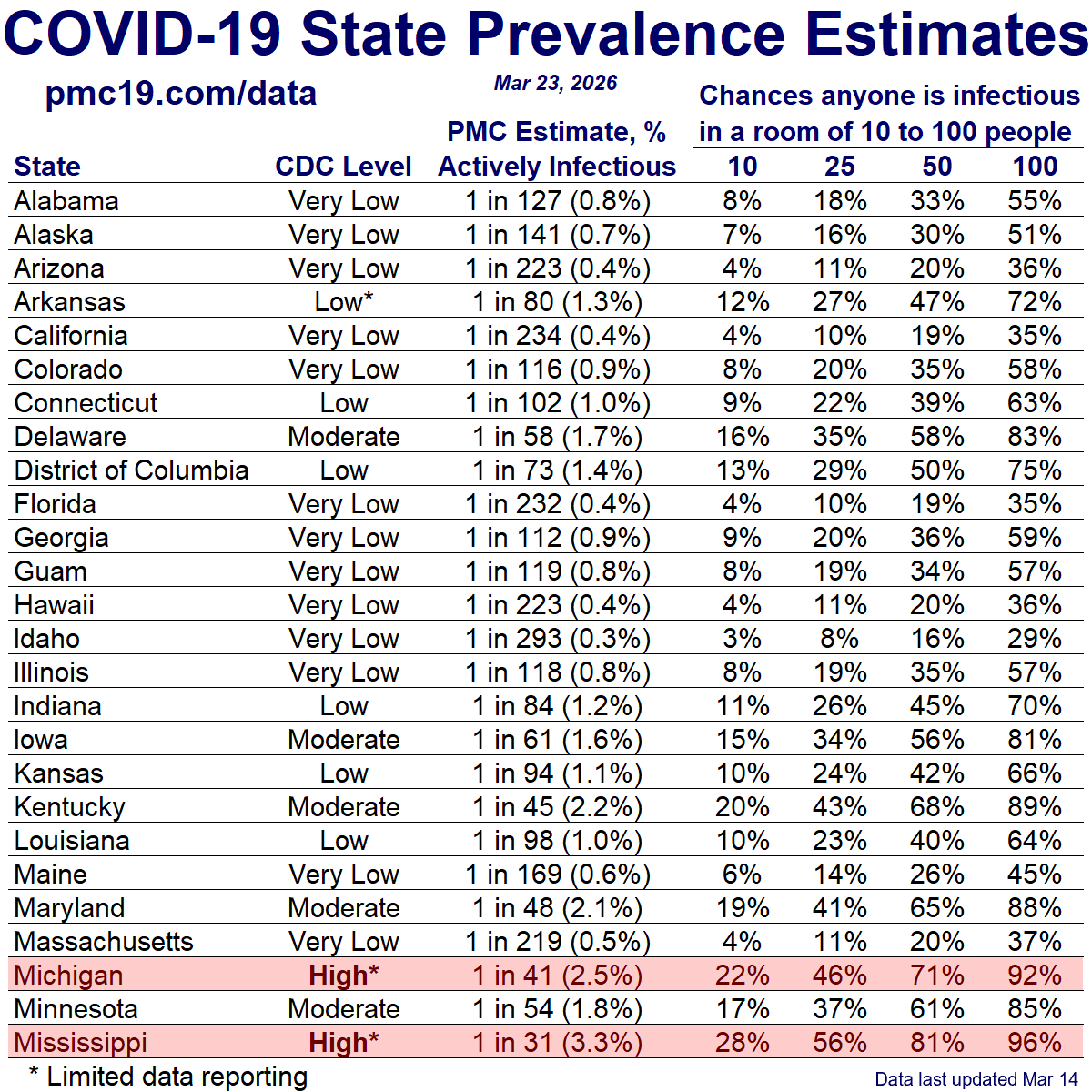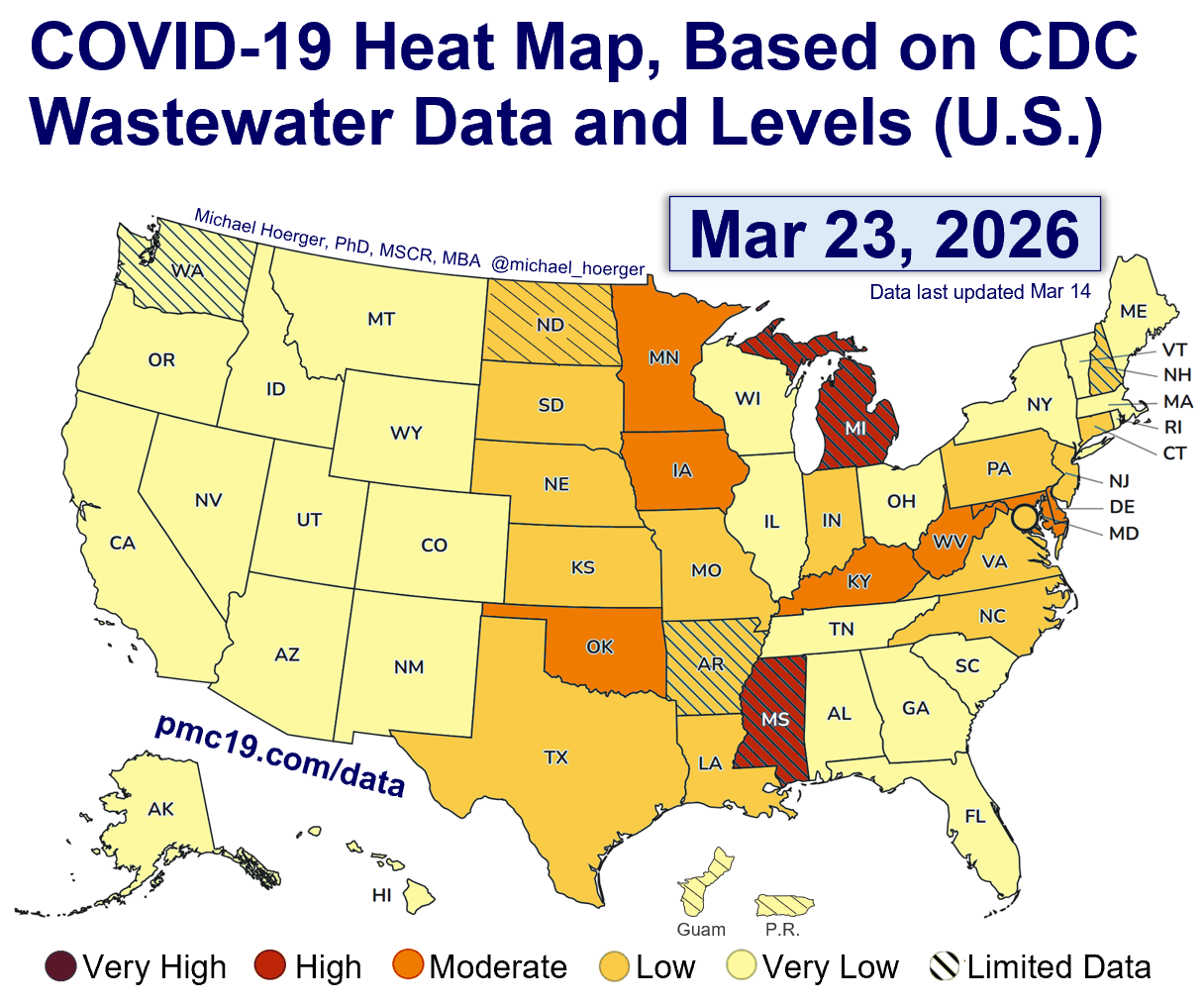 - Michigan: CDC Michigan | WastewaterSCAN Michigan | State of Michigan