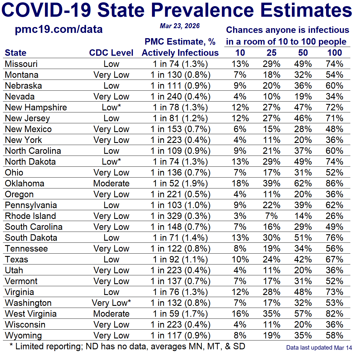 - Oklahoma: CDC Oklahoma | WastewaterSCAN Oklahoma (N/A)